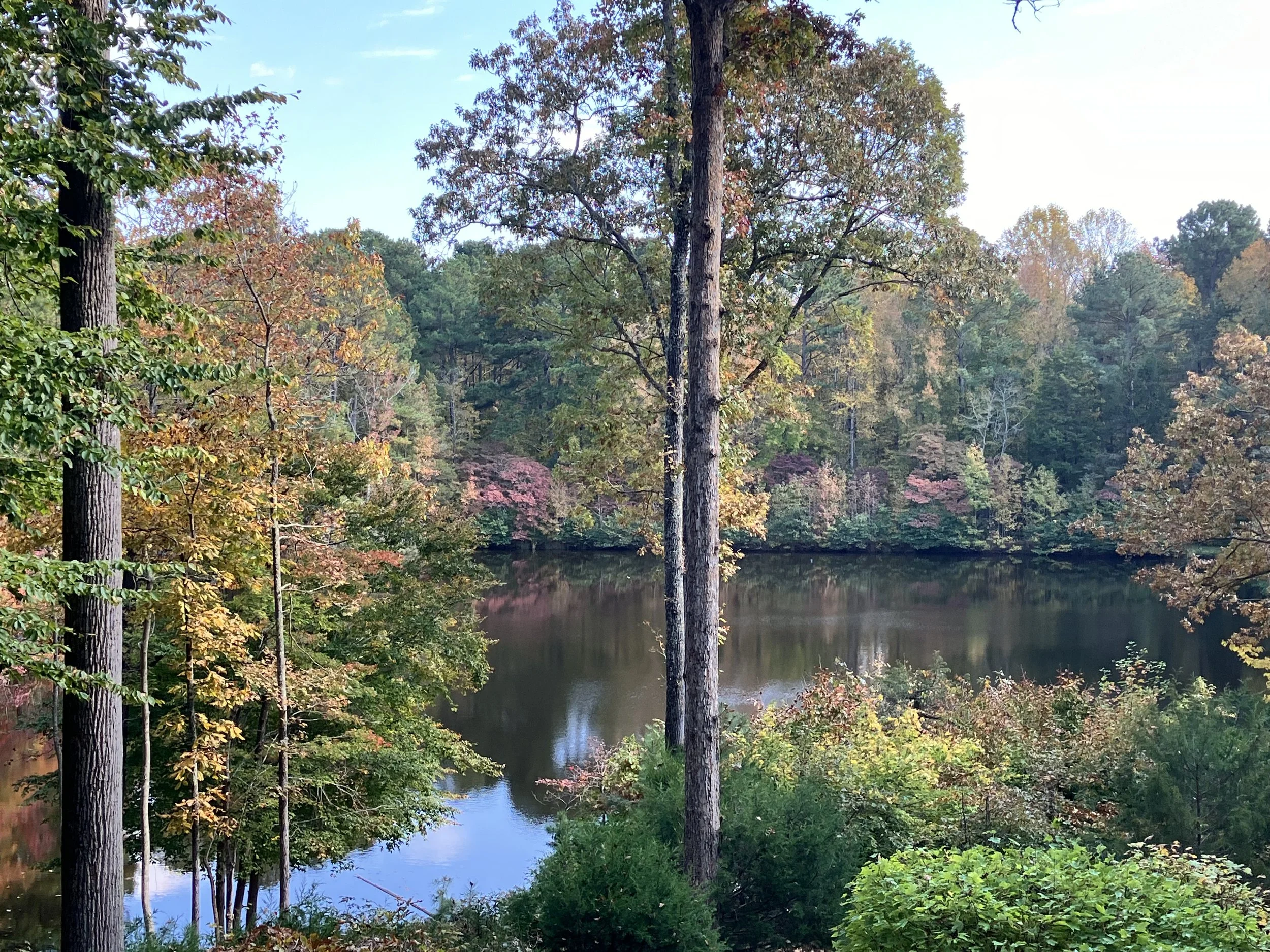 From Carrboro, you can travel on Jones Ferry crossing University Lake. You will continue for almost 2 miles and take a left on Damascus Church Road. You will go exactly 1 mile and take a left on to a gravel driveway. This is at the end of a steep curve. The mail box is on the right side of the road across from the drive way. You will see a White mail box with 908, and then a white mailbox with 912. On this rough gravel drive, you will pass a house on the right and quickly a house on the left. Keep going straight and the third house is mine. Drive pass the house until the driveway ends. You can park to the left up in an area that has 2 metal cubicles or at the end of the driveway. You will see a pond in front of you and stone steps leading down to the studio.